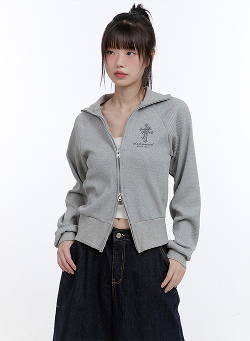 우슬리 빈티지 레터링 골지 집업 CB3107