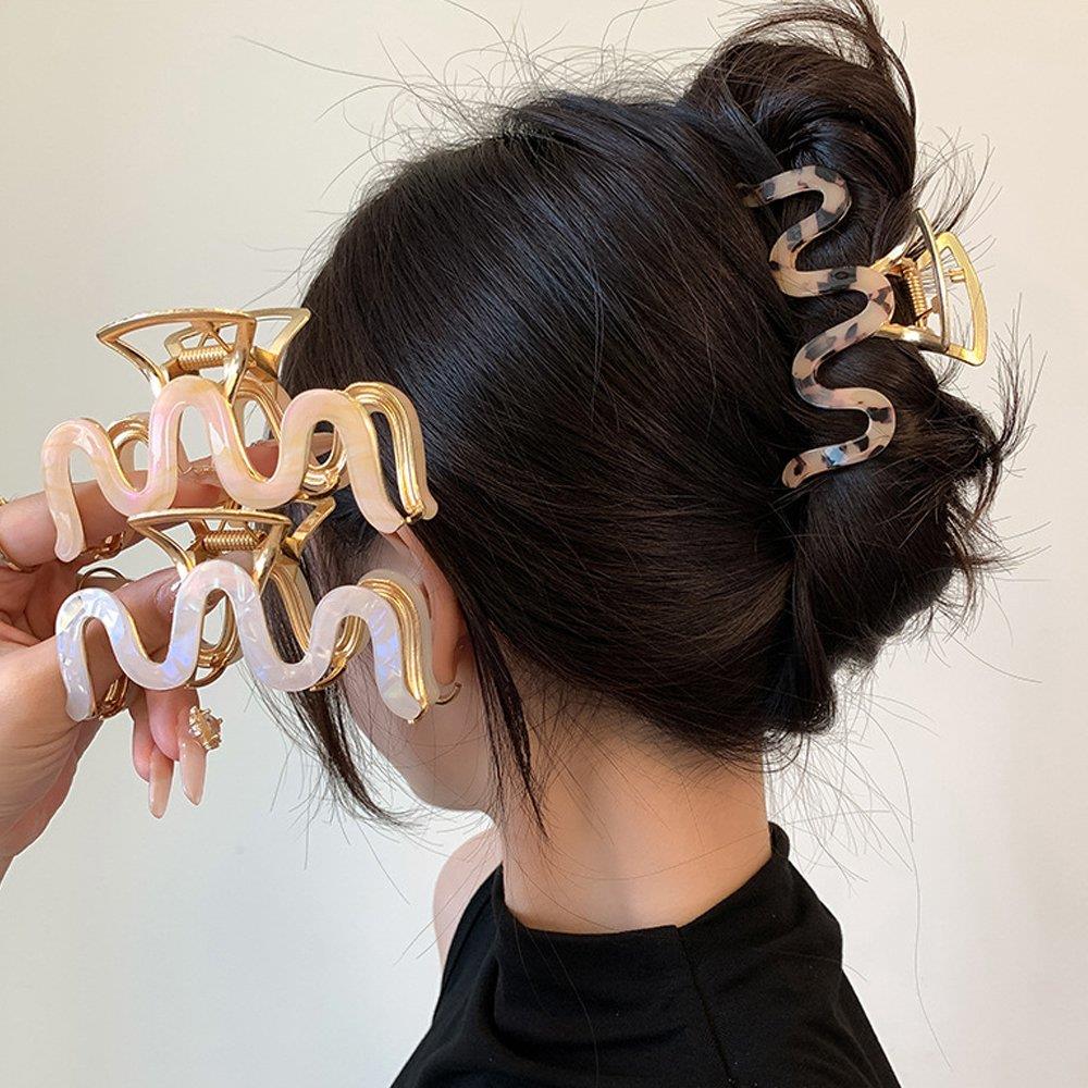 닛리에 여성 올림머리 웨이브 마블 머리핀 금색 얇은