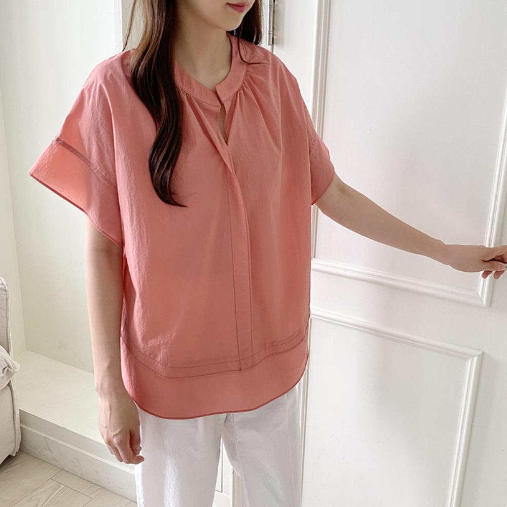 트터치 여성 루즈핏 블라우스 비대칭 바스락 썸머 숏슬리브