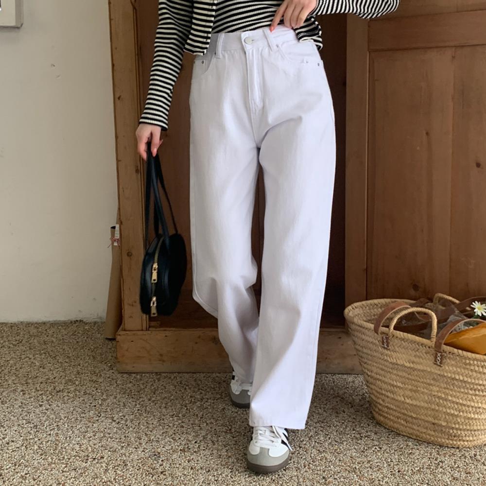 고아런 심플 일자 여성 하이라이즈 스프링 바지 면
