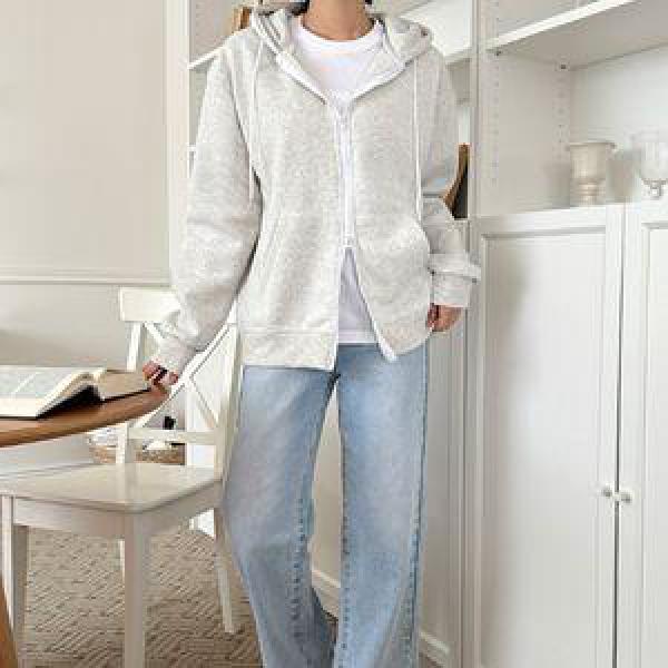 여자 고등학생 회색 심플 투웨이집업 맨투맨 후드티