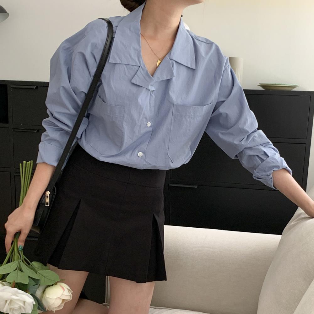 릿나우 가을 셔츠 하늘색 롱슬리브 여성 국방색