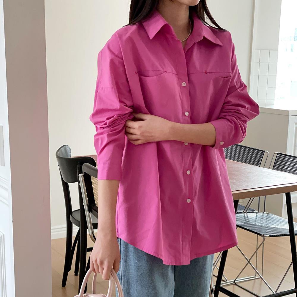 엔콜루 진분홍 초록색 여성 파랑 셔츠 롱기장