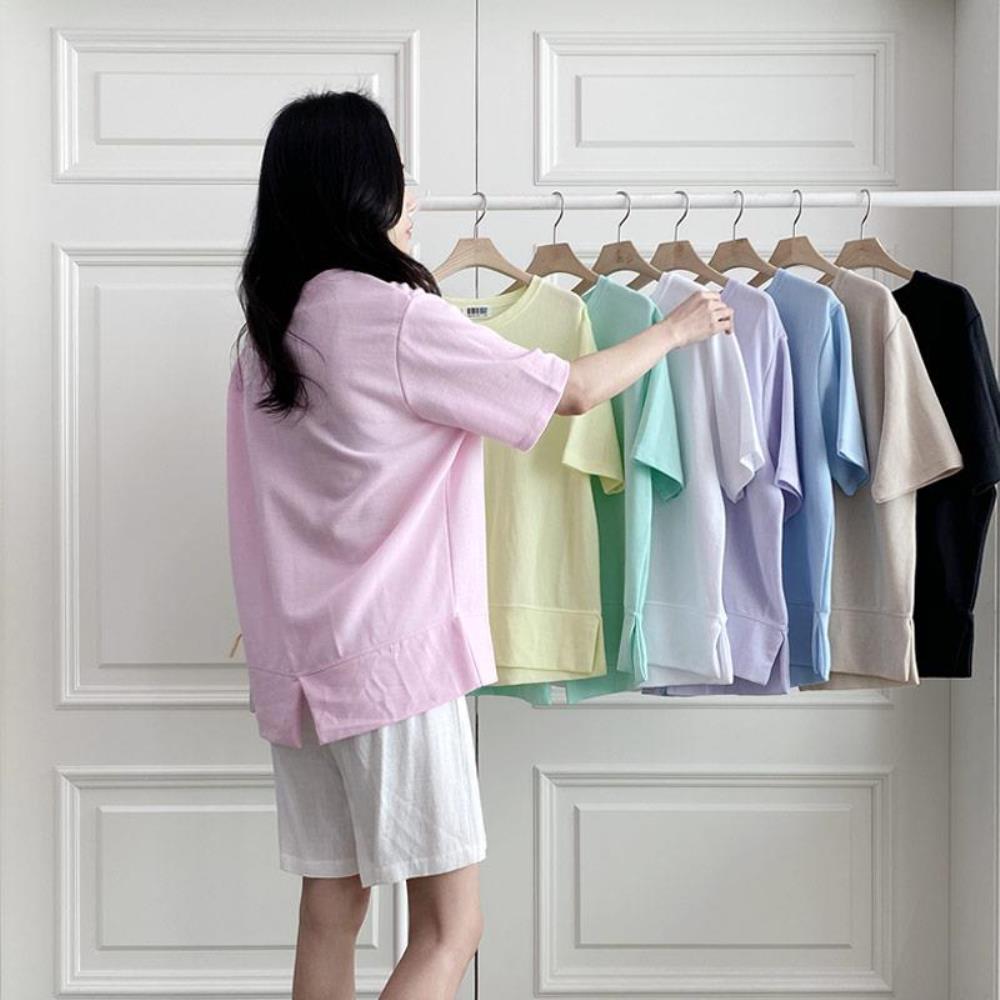 슬히럿 숏슬리브 스프링 플레인 면 라운드 티셔츠 여성 소프트