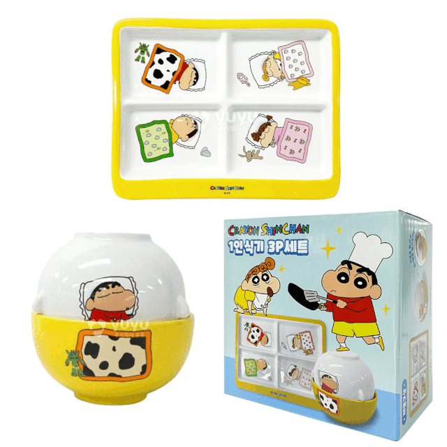 짱구 1인 식기 세트 식판 반찬그릇 국그릇 밥그릇 3P 세트 세라믹 도자기 전자렌지 사용가능 집들이 선물