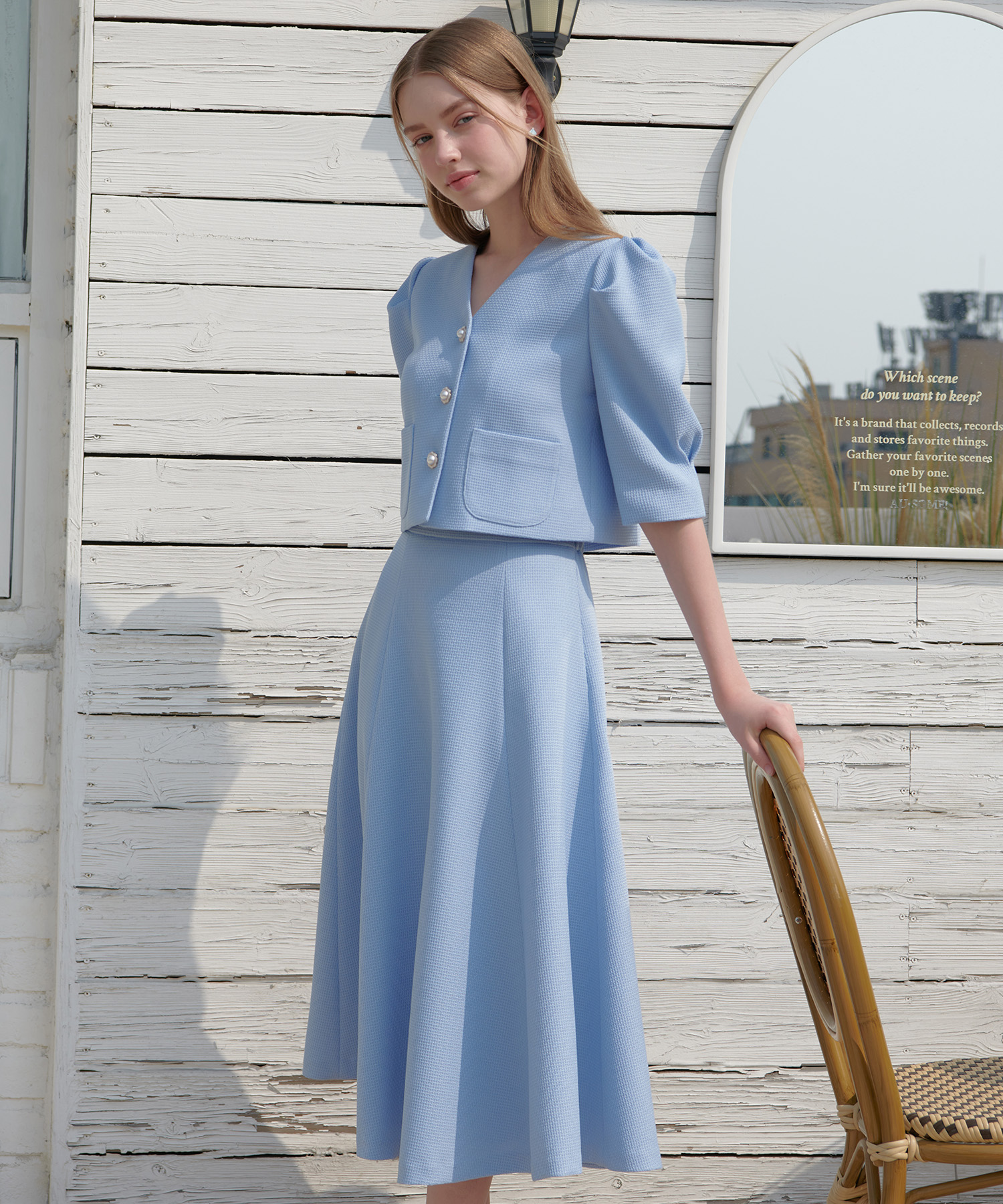 [차주영,엄지윤 착용][세트] 퍼프 트위드 자켓 & 스커트 / 블루