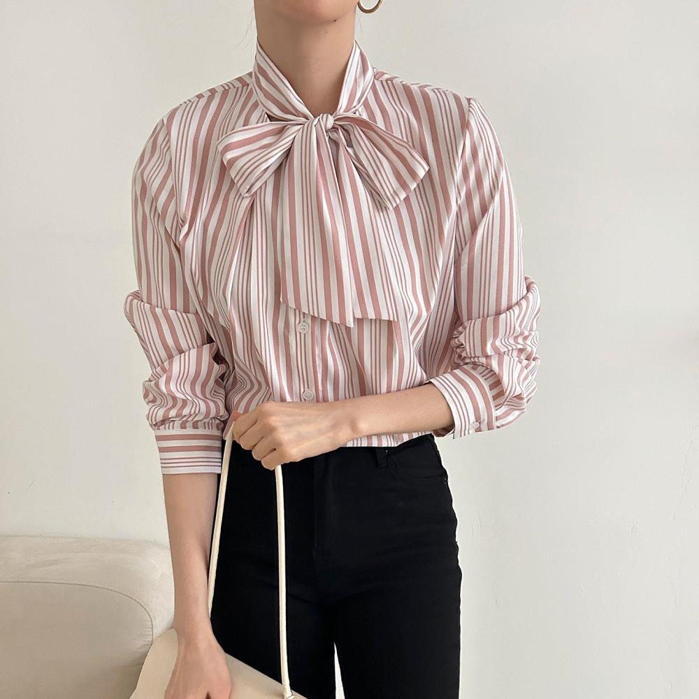 오아라 봄셔츠 블라우스 배색 줄무늬 여성