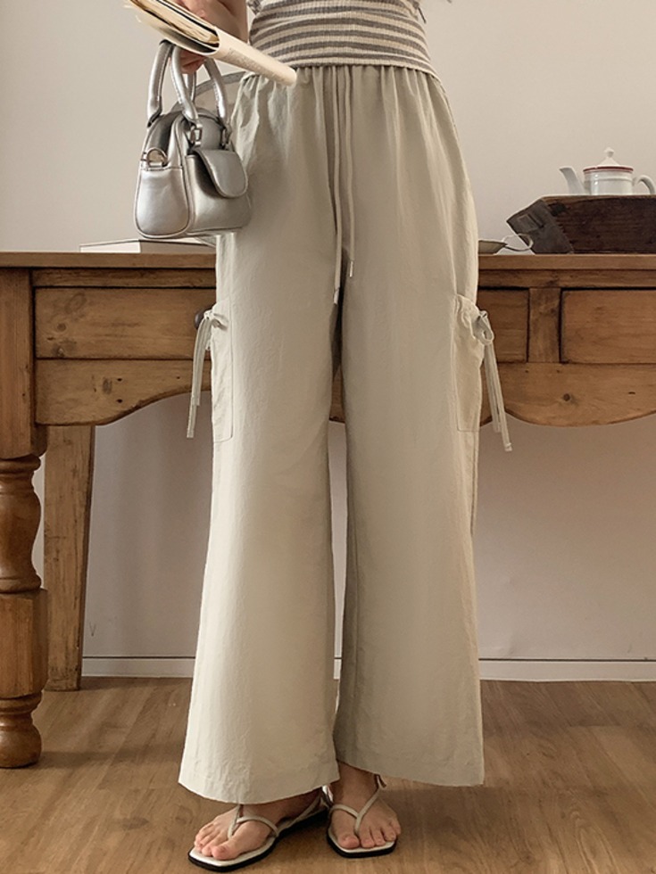 [기본/롱] 르온켄 바스락 스트링 포켓 밴딩 팬츠( 여름-데일리룩-캐주얼룩-데이트룩-출근룩-공항룩-긱시크룩-빅사이즈-38사이즈-자체제작-밴딩-허리밴딩-편한-긱시크-스트랩-여름팬츠 )