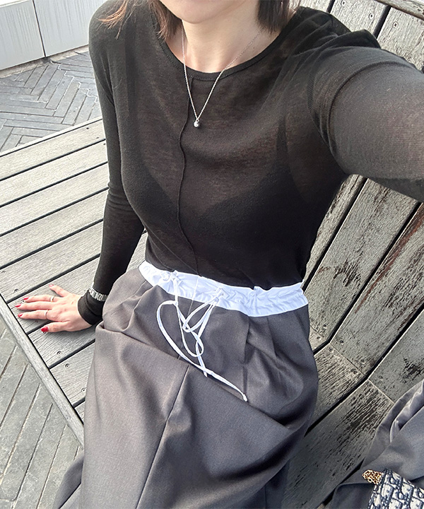 🚀당일발송[🧡울+텐셀] 플로우 울 텐셀 시스루 절개 긴팔 티셔츠, 텐셀티, 긴팔 이너티, 살안타템(시스루티,텐셀티,절개티,슬림핏티셔츠,슬림티,기본티,긴팔티)