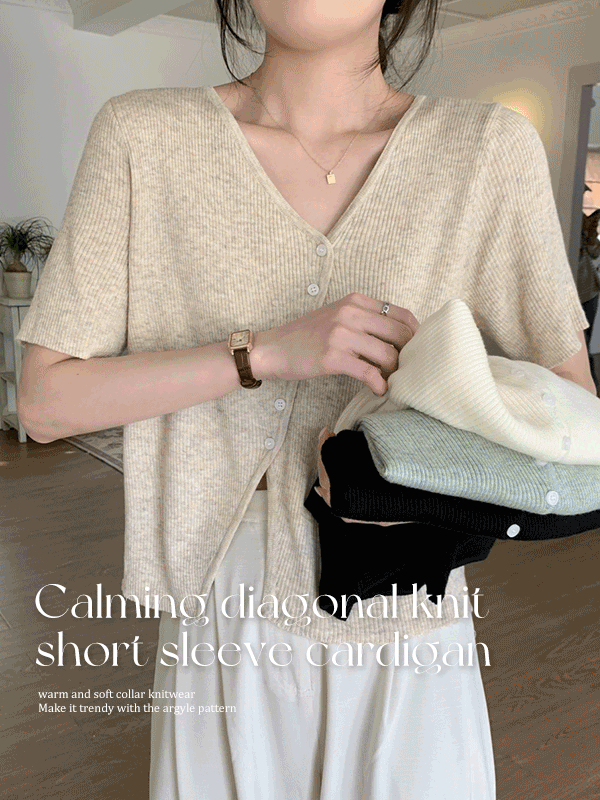 (여름가디건/기본템/여리핏♥) 카밍 사선 브이넥 니트 반팔 여름 가디건
