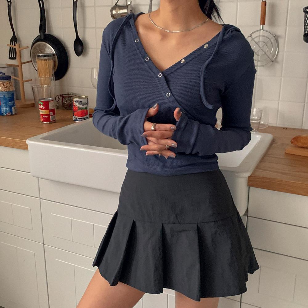 도지다 슬림핏 여성 주름디테일 후디 잔골지 미니멀 스프링 티셔츠