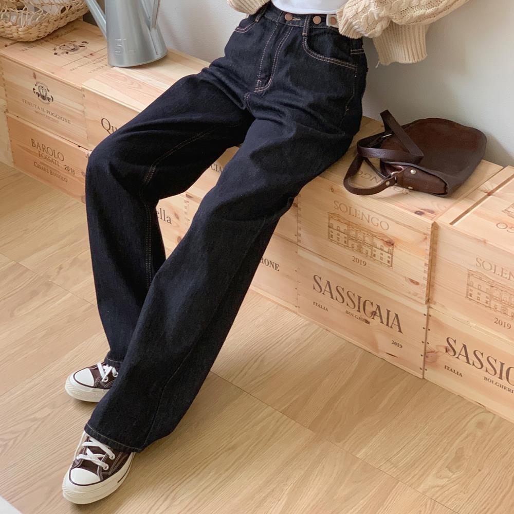 킨뉴요 와이드 여성 청 생지 바지 논페이드
