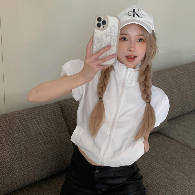 (당일출고) 하이넥 반팔 바스락 나일론 크롭 퍼프 레이어드 여름 바람막이 아노락 자켓 점퍼 아우터 휴가룩 바캉스룩 휴양지룩 살안타템 장마룩 3color