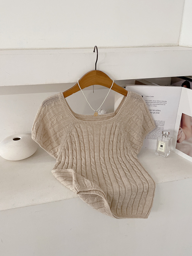 텐딕 울 꽈배기 스퀘어넥 반팔 니트(3color