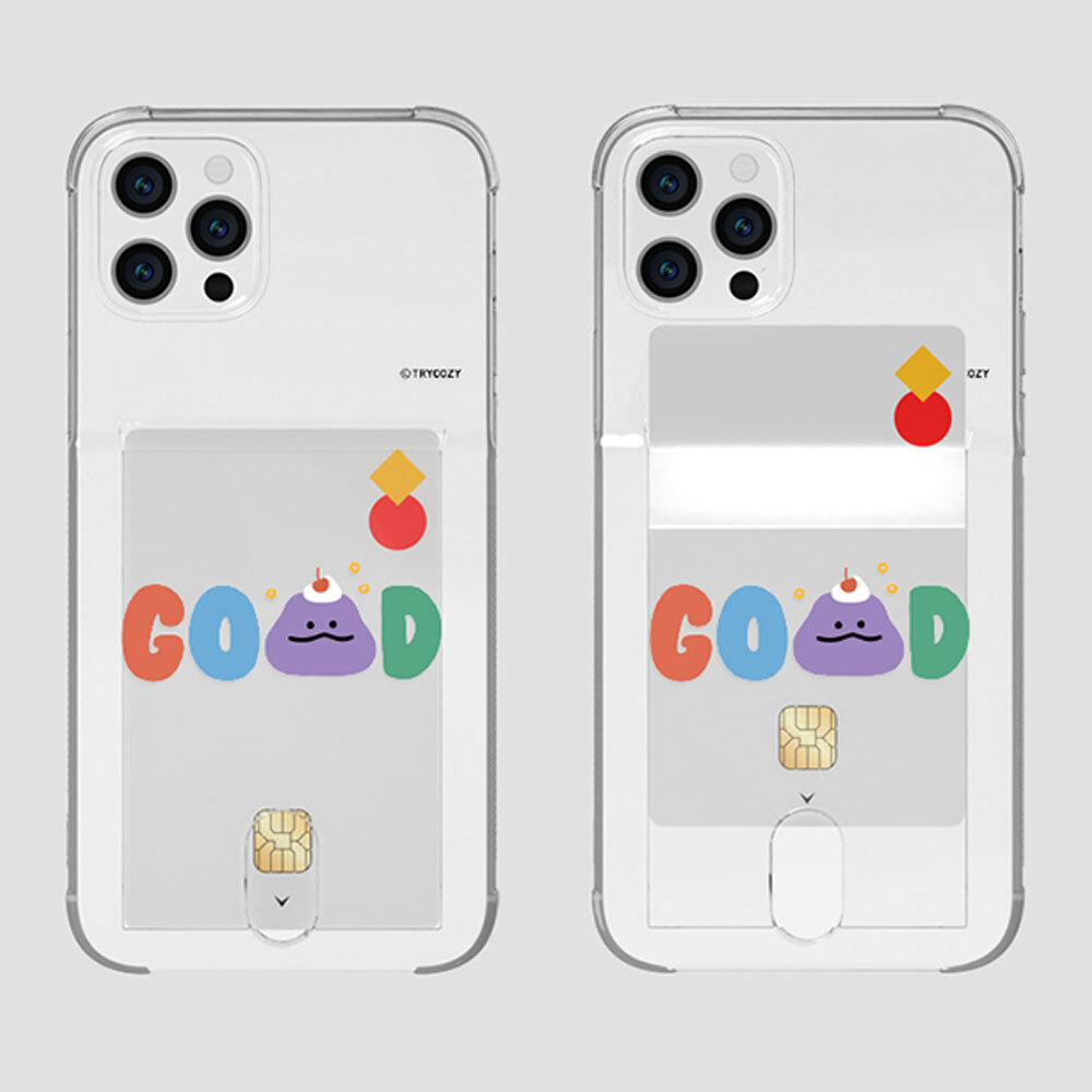 아이폰 15 14 프로 프로맥스 플러스 키치 레터링 카드수납 투명 젤리 케이스