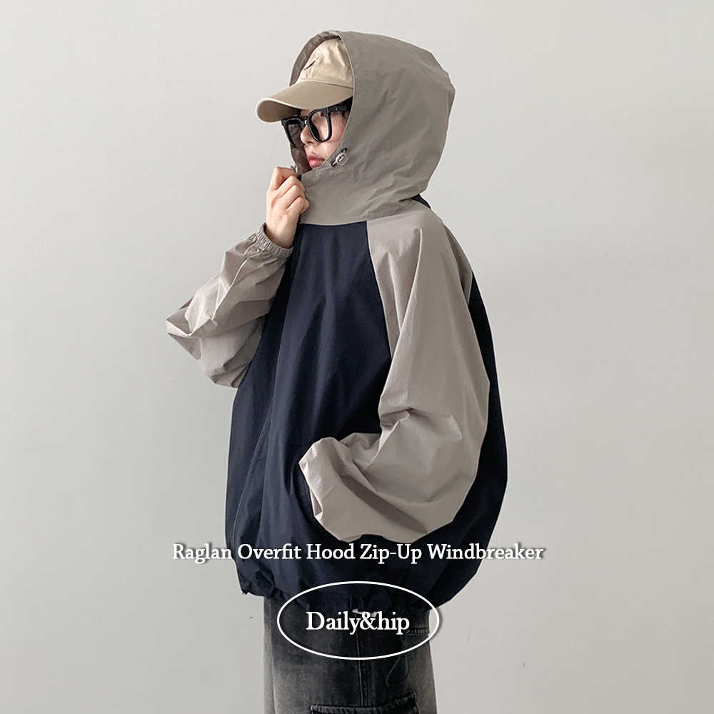 [🖤오버핏/고프코어룩] *투웨이 지퍼* 고피 스트링 배색 래글런 나그랑 후드 바람막이 자켓 윈드브레이커 후드집업 #가을옷 #간절기 #출근룩 #가을아우터 - 4color