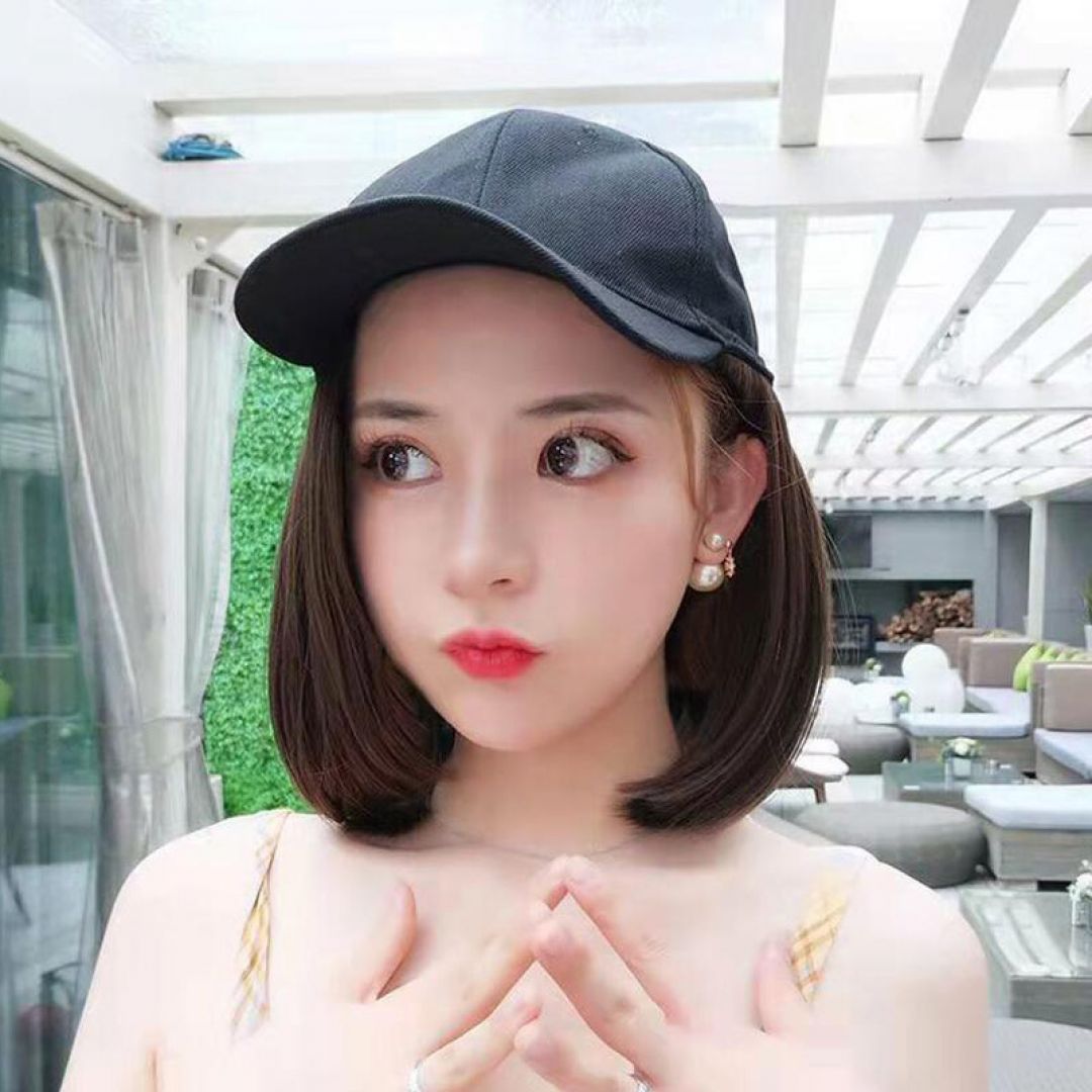 여자 모자 일체형 가발 단발머리 짧은 부분가발 항암 암환자 MQ38