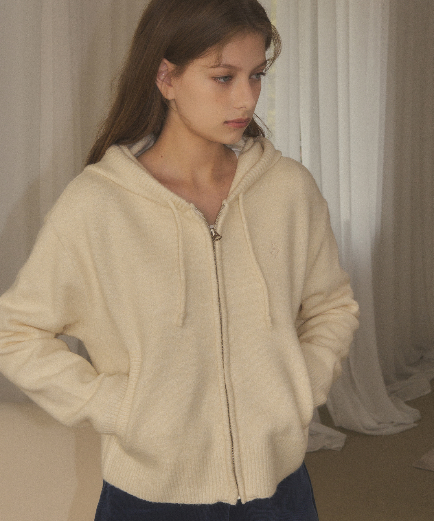 SIKN2089 에센셜 니트 후드 집업_Ivory