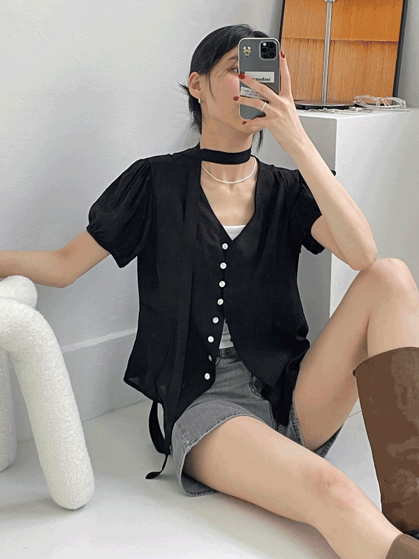 [반팔ver.] 로망 타이 브이넥 블라우스 (3C)