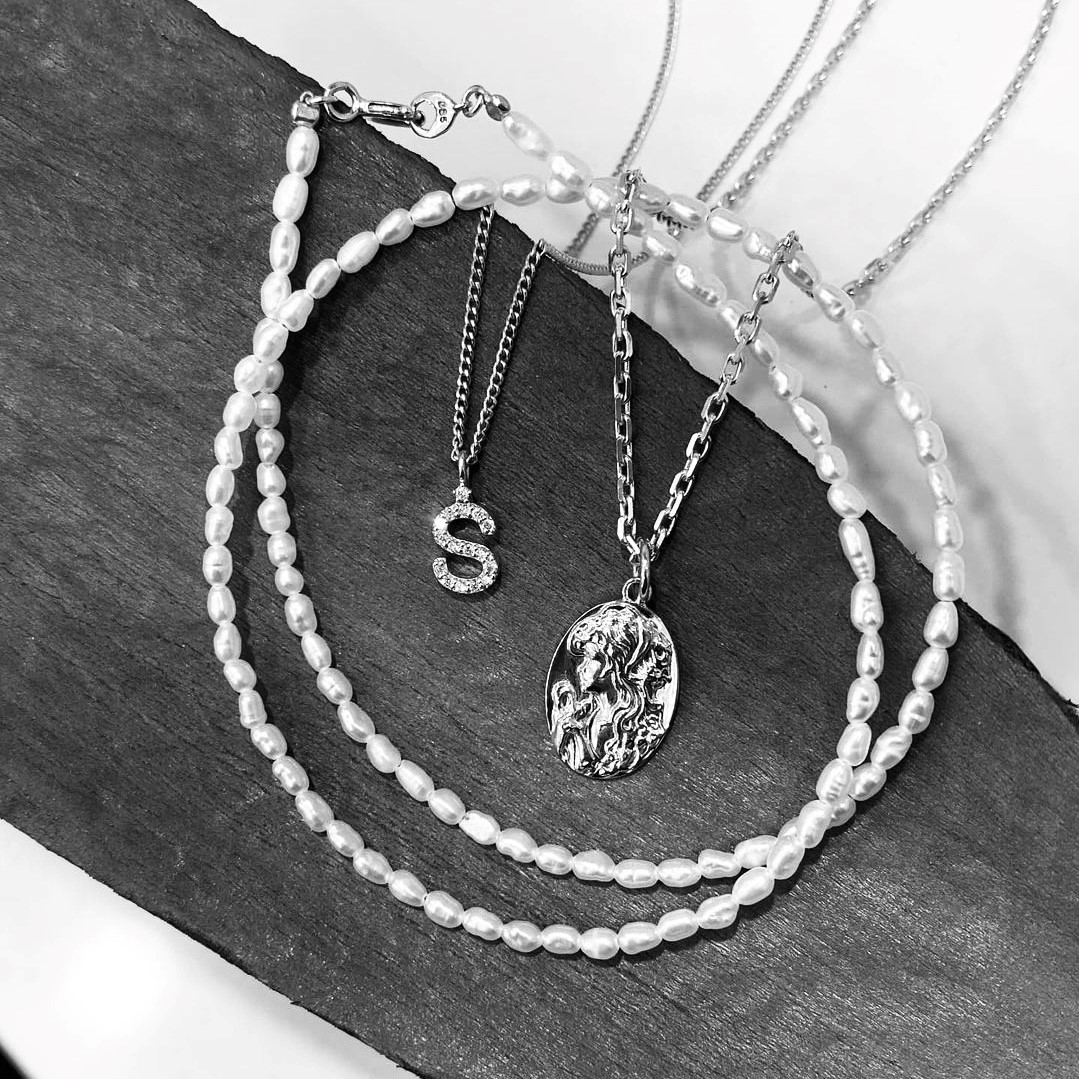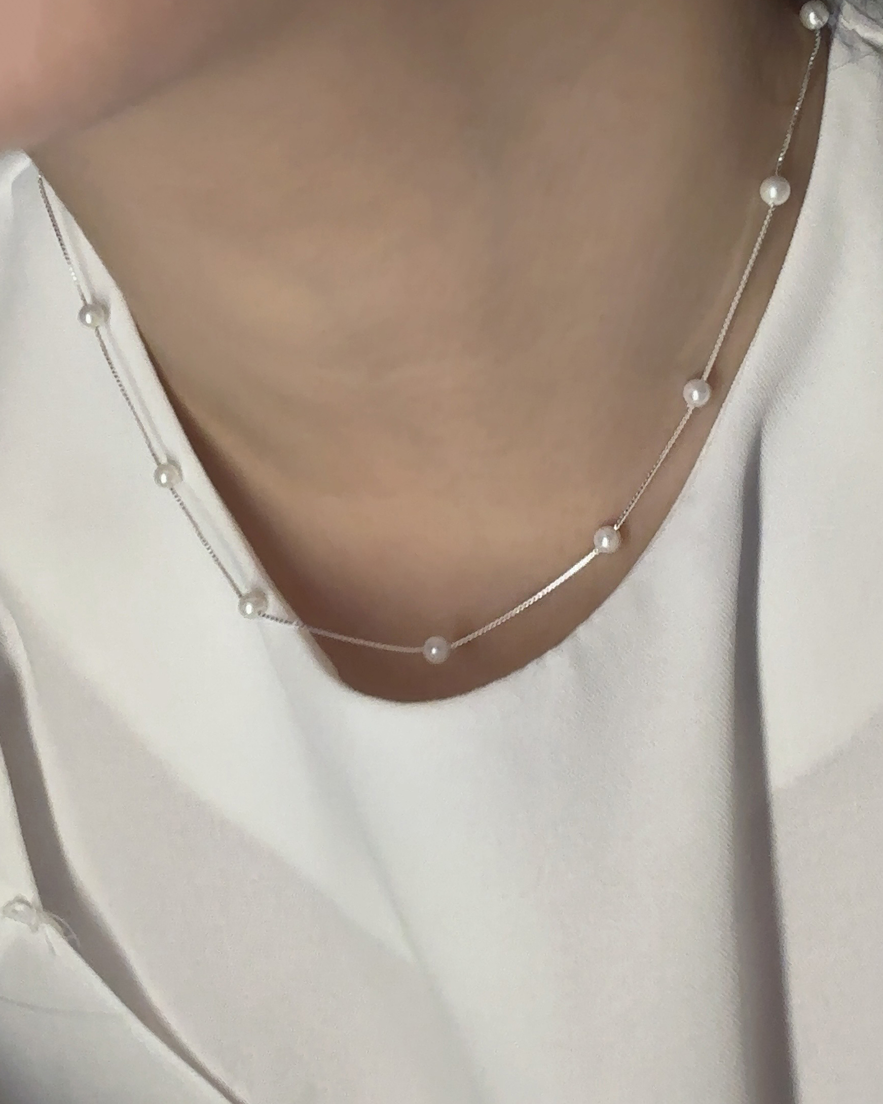 실버925 3mm진주 레이어드 박스체인 목걸이