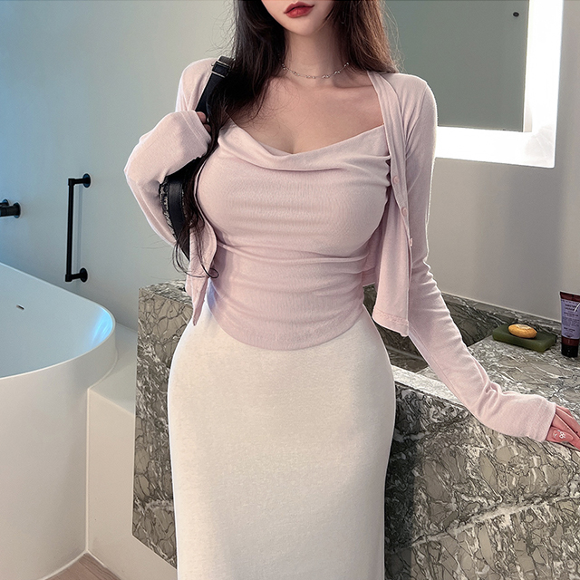 [나시+가디건세트❣]리플 드레이프 크롭 골지 나시 가디건 세트
