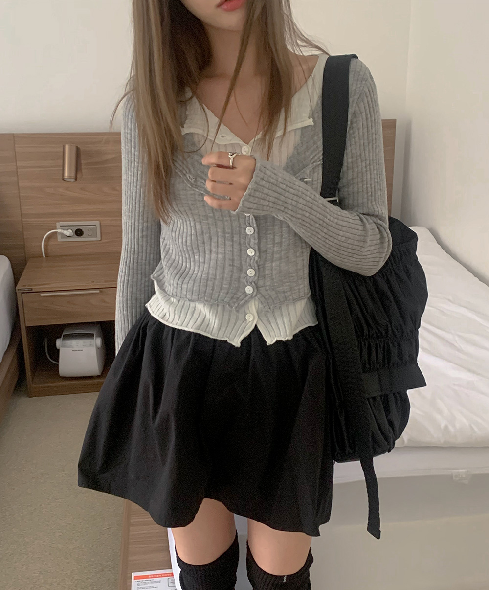 [🚘창고이전세일💙] 리아나 레이어드 가디건 (2color) 긴팔가디건/간절기가디건/골지가디건/브이넥가디건/레이어드/여름가디건/여름니트/살안타템/에어컨템/썸머룩