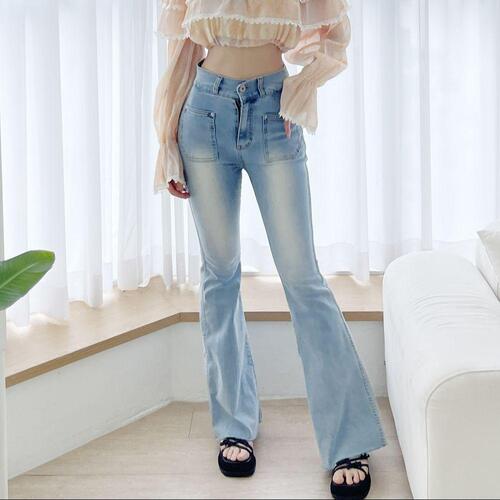 [골반뽕/총장110/키큰여자청바지] 골반패드 내장 하이웨스트 데님 슬림 세미 부츠컷 청바지 (4color)