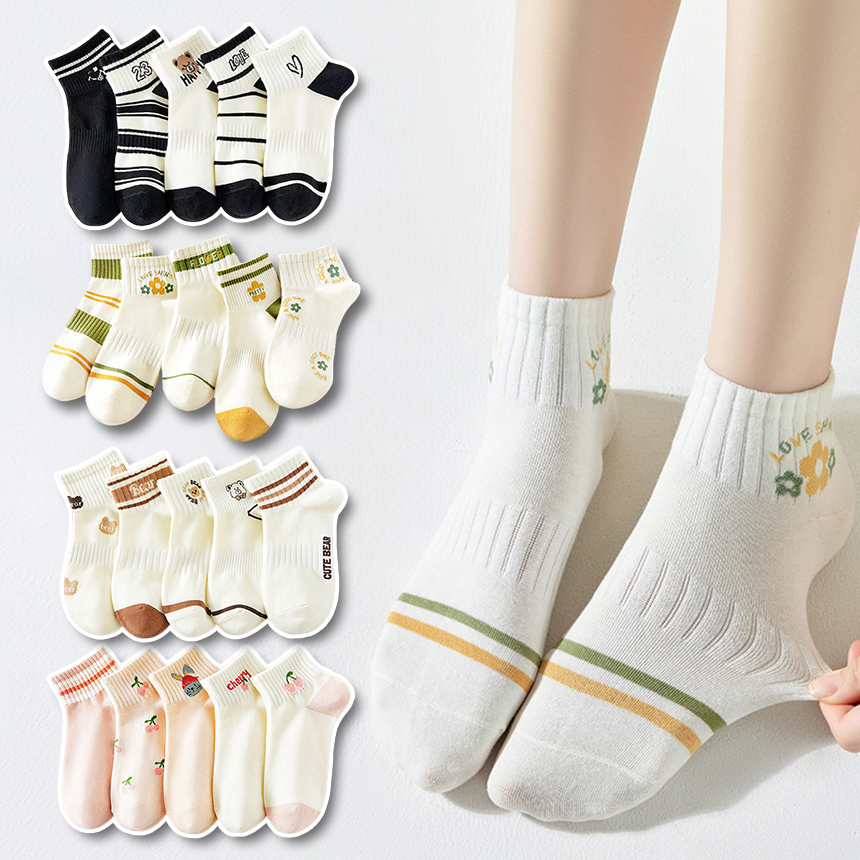 여자 귀여운 데일리 코튼 사계절 스니커즈 여성 패션 발목 캐릭터 양말 4종 세트 브라보발목양말4종