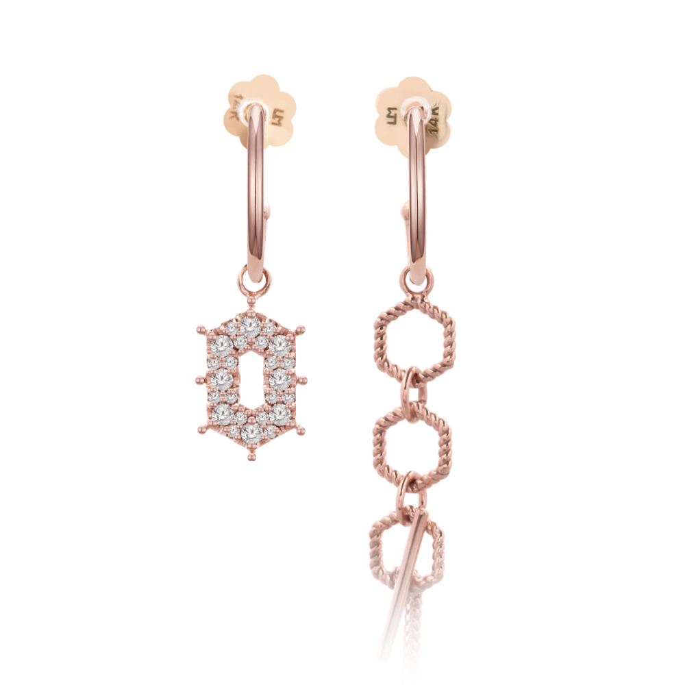 14K 나만의 쉴라 육각 벌집 헥사 두줄 꼬임 사슬 체인 귀걸이