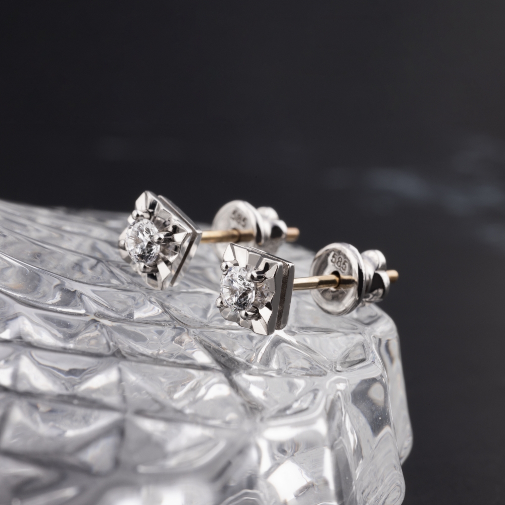 14K/18K 1부 사각 로터스 랩다이아몬드 화이트골드 여자 이어링 선물 귀걸이