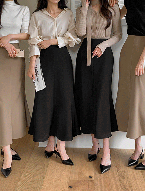 [완벽찰랑♥][부담ZERO핏!][made] 플레아나 페미닌 머메이드 롱 스커트 (가을/간절기/데일리/데일리룩/출근룩/데이트룩/오피스룩/머메이드/롱/플레어/롱치마)