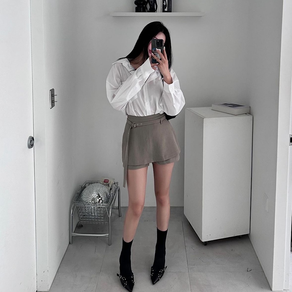 (I SALE ) 여성 가을 페미닌 하객룩 A라인 벨트 치마바지 미니스커트 (3col)