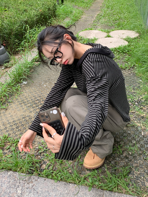 [*BEST*/MD PICK!] 초코 단가라 버튼 후드티 2color