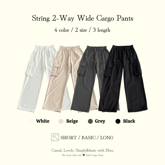 🔥1+1할인 EVENT🔥[24fw🍁/기장수선❌] 스트링 two-way 와이드&조거 카고 슬랙스 밴딩 팬츠 - 4color