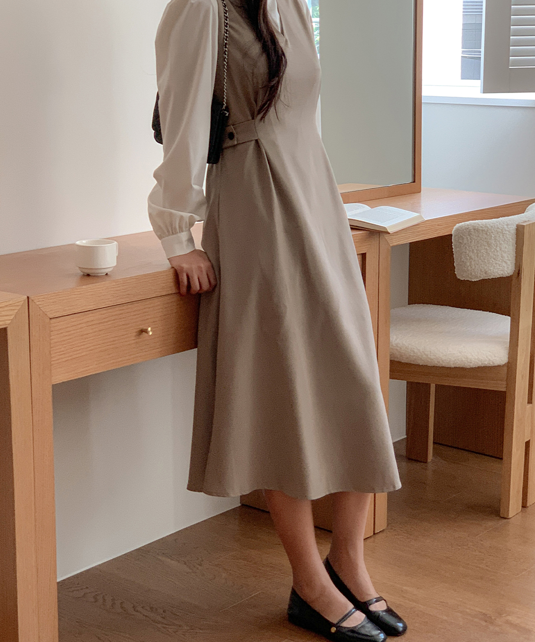 [MADE]셀린 브이넥 비조 핀턱 원피스 (S-XL/연말룩/하객룩/출근룩/가을하객룩/가을원피스/하객룩원피스/레이어드원피스/뷔스티에원피스)