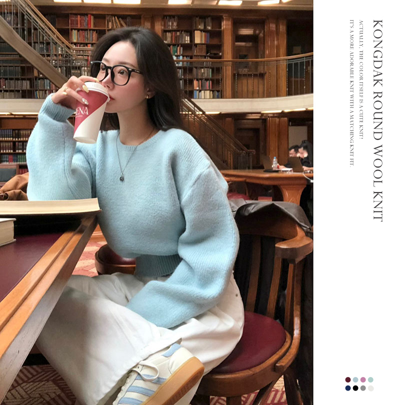[MADE/울함유]콩닥 시보리 라운드 베이직 울 니트