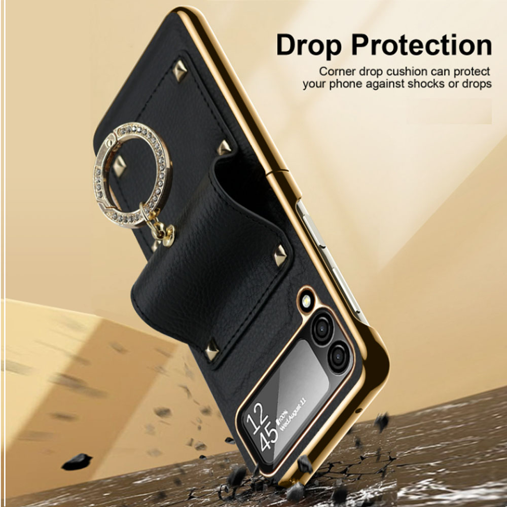 갤럭시 Z플립6 플립5 플립4 플립3 지플립 제트플립 케이스 가죽스트랩 큐빅