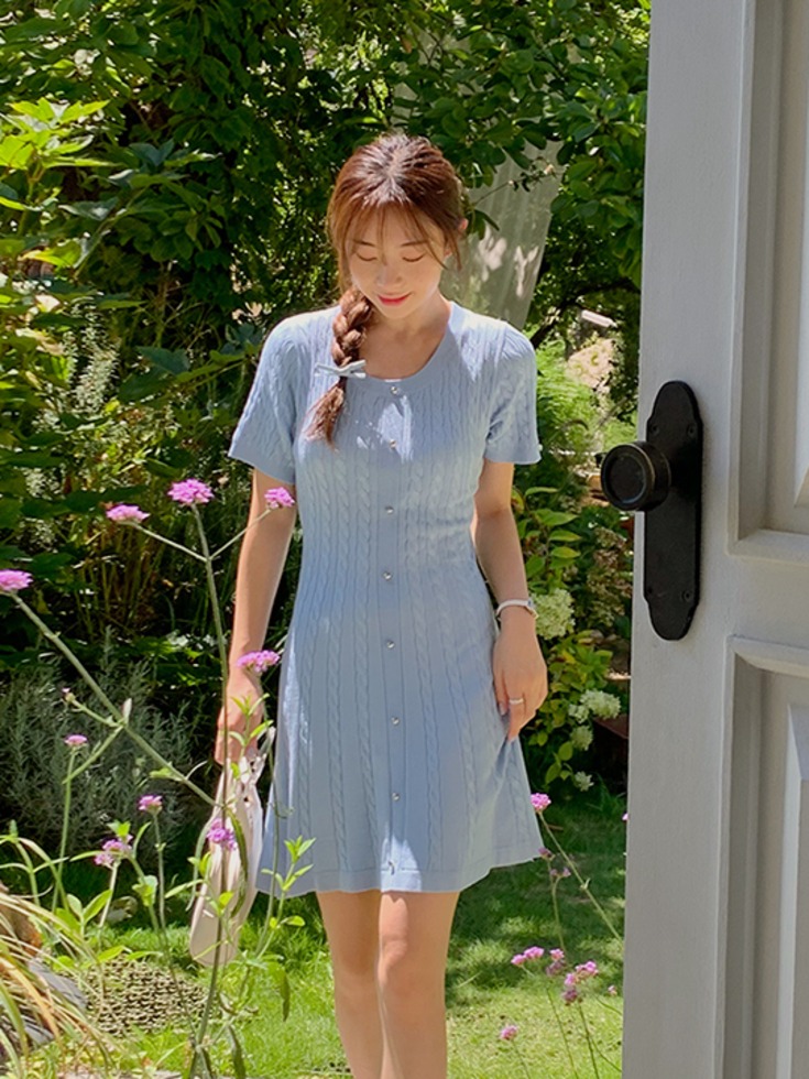 [44-120]로디레나 니트 꽈배기 라운드넥 미니 원피스 ( 여름-데일리룩-데이트룩-캐주얼룩-러블리룩-공항룩-휴가룩-휴양지룩-바캉스룩-비치룩-빅사이즈-120사이즈-자체제작-여성스러운-통통녀-여름하객룩)