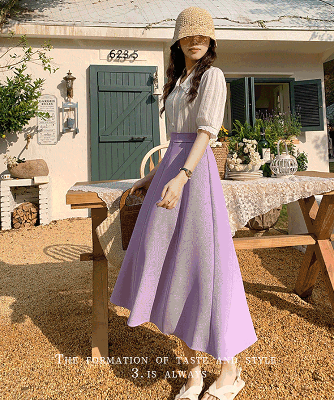 플레어 A라인 러블리 페미닌 여성 뒷밴딩 치마 롱스커트