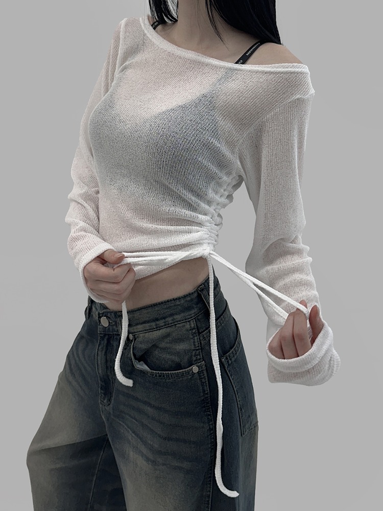 렌츠 시스루 셔링 니트 (2color)