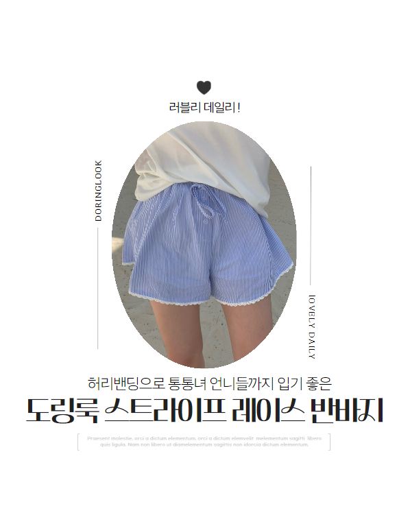 [MD인생바지등극🩵/홈웨어로도👌/고퀄리티💌] 스트라이프 레이스 반바지 데일리 밴딩 숏팬츠 (1color)