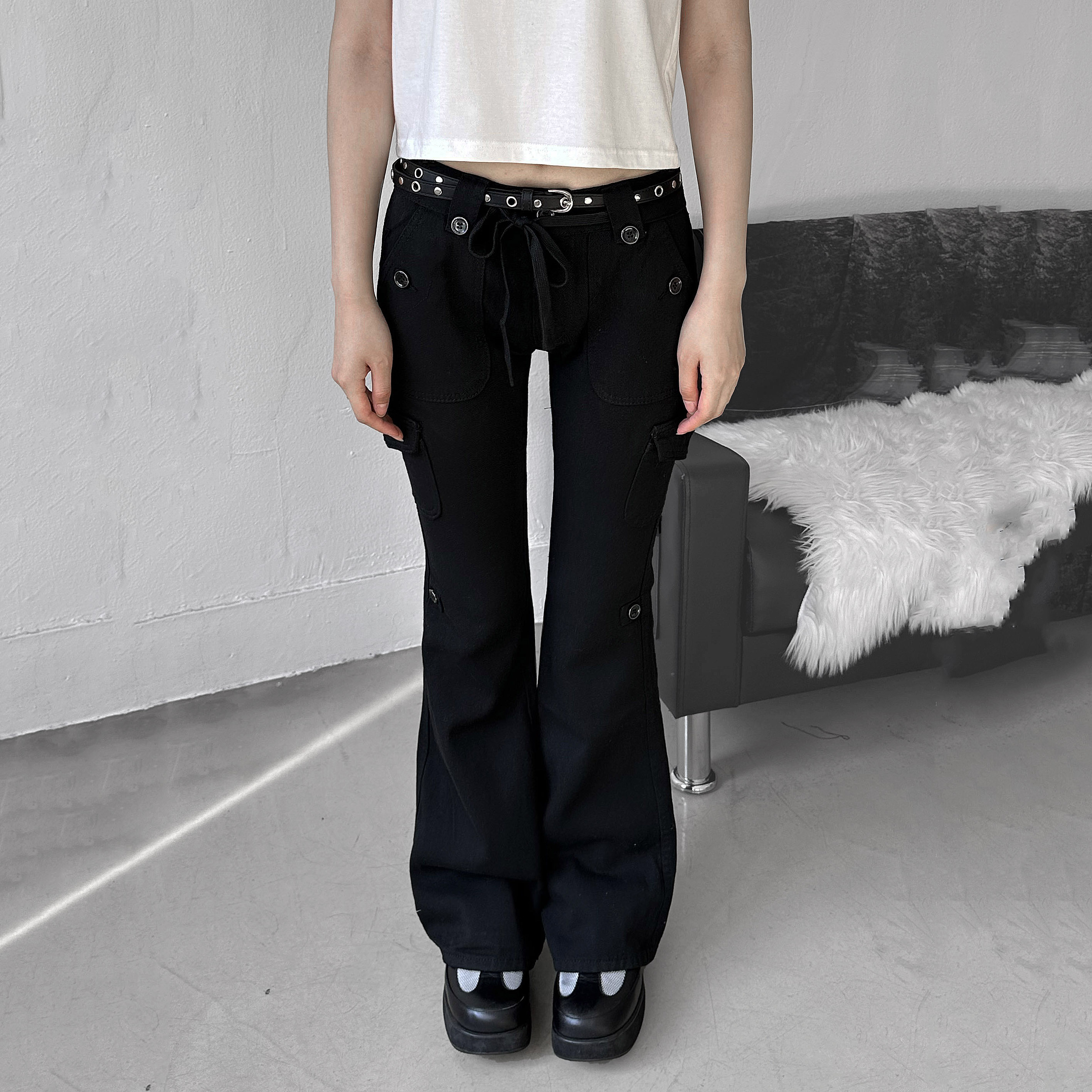 버튼 카고 슬림 부츠컷 팬츠 (브라운, 블랙)