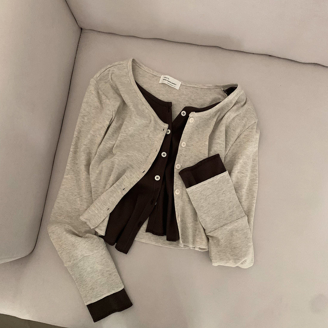 [1만장돌파🎉/일체형] 자체제작 #크치Made 레이어드 골지 가디건, 니트 긴팔티 - t