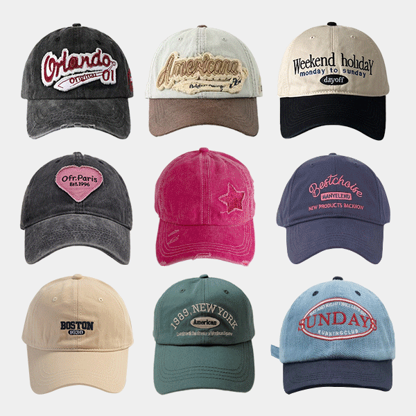 [볼캡92종] 빈티지 자수 레터링 캐주얼 데일리 y2k 워싱 야구모자 모음 (24GHA003)
