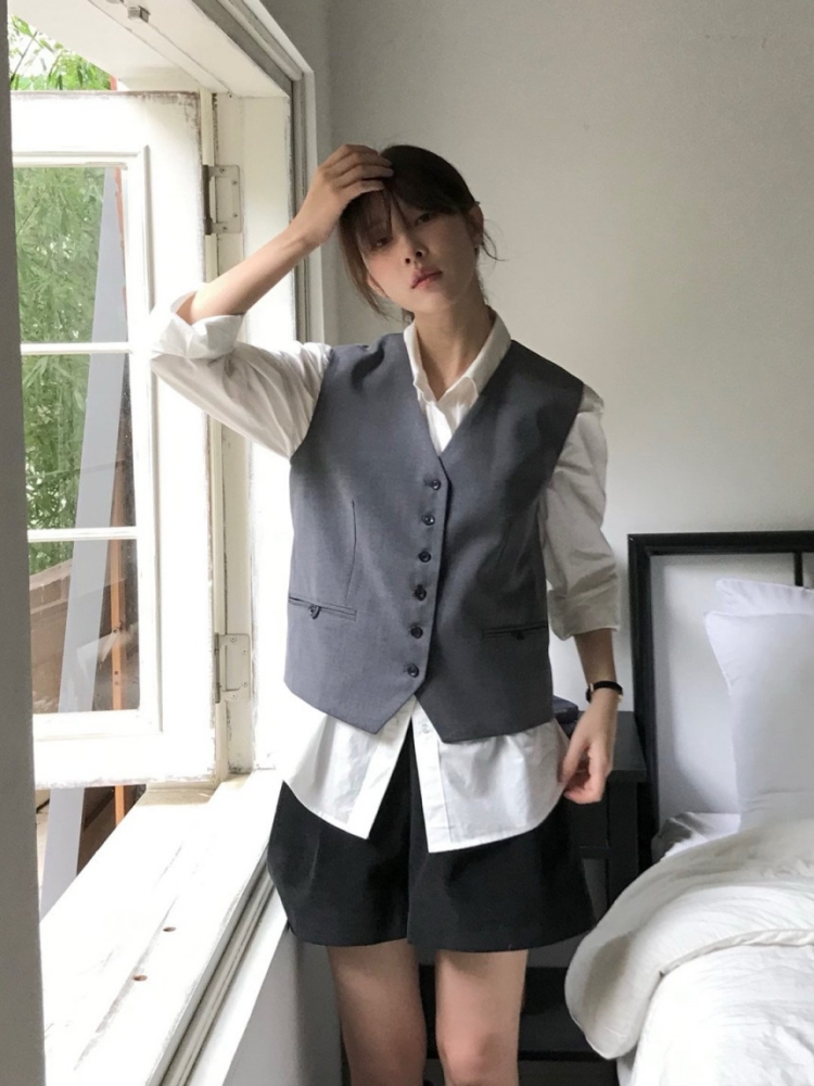 vergamot 베르가못 울 버튼 브이넥 조끼 베스트 2color