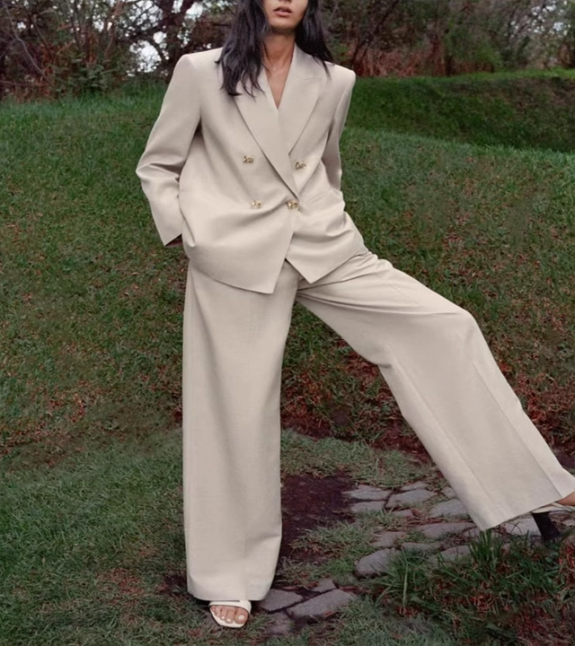 30대 40대 여성의류 결혼식하객룩 더블 자켓 와이드팬츠 세트