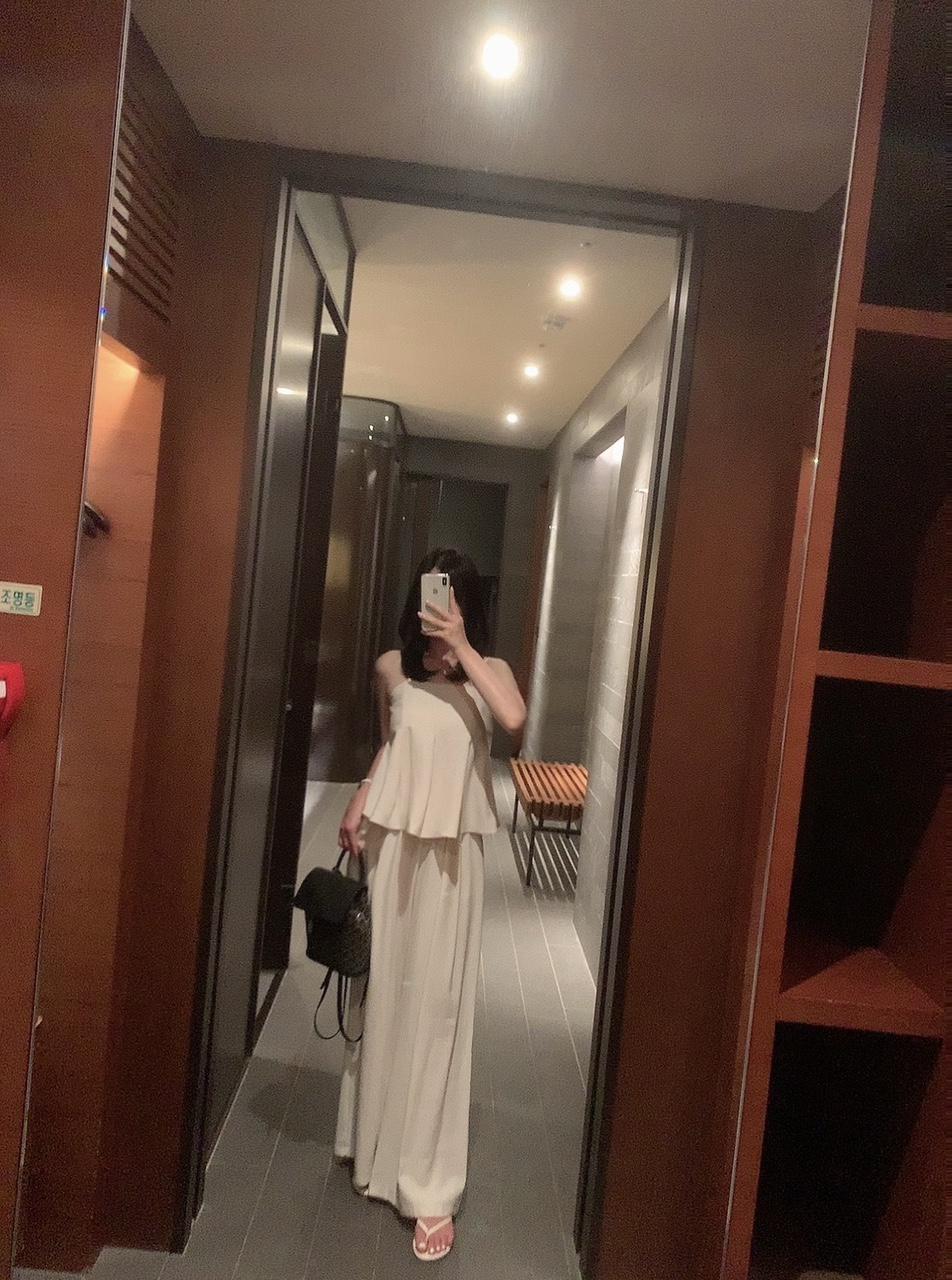 린넨 뷔스티에 블라우스 핀턱 와이드 팬츠 투피스 세트