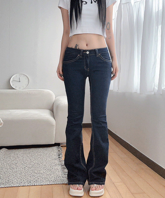 [OOT/S-L] 스티치 진청 로우라이즈 부츠컷 pt