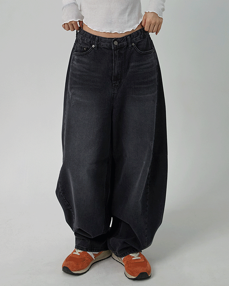 [모델추천/히든밴딩] 테키 캣브러쉬 벌룬핏 흑청 와이드 데님 청바지