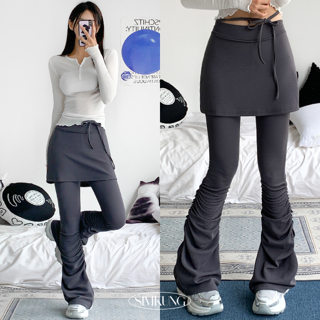 [힙무드/2col] 카리나 리본 셔링 치마바지 부츠컷 레깅스 팬츠